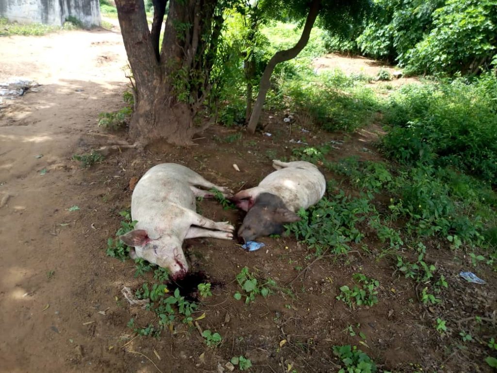 Over one hundred pigs were killed at the Yagbon residential area, a suburb of Damongo by the youth of the area.