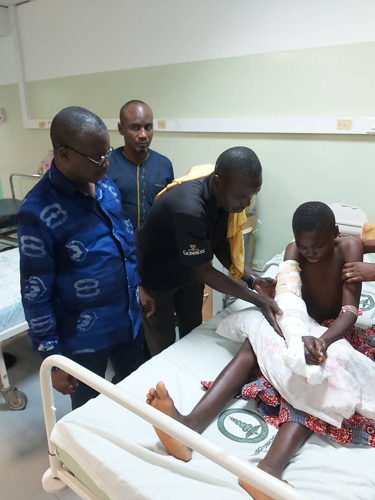 The Savannah Regional Minister and MP for Salaga South was at the hospital on Wednesday 11th September 2019 to check on the health of innocent Alhassan and after a short meeting with the Doctors provided an undisclosed amount required for the bone surgery of the teenager.