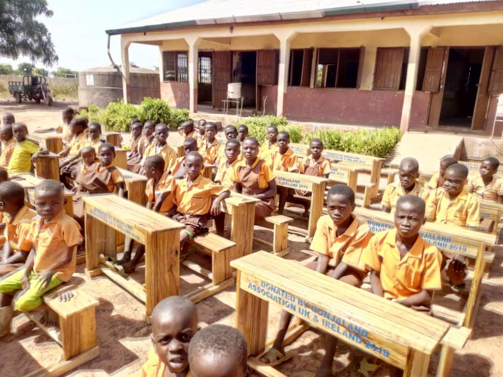 The Gonjaland Association UK/Ireland branch has donated 40 dual desks to some two schools in the Central Gonja district of the Savannah Region.