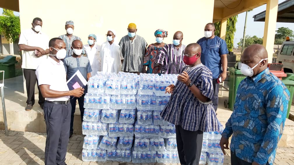 The Minister of the Savannah Region Hon. Salifu Adam Braimah on 28th April 2020 donated 100 cartons of bottled water produced by Ghana water Company Ltd to the West Gonja Municipal Catholic Hospital at Damongo in fulfilment of President Nana Akufo-Addo’s commitment to creating a conducive working environment for health workers in the light of COVID-19.
