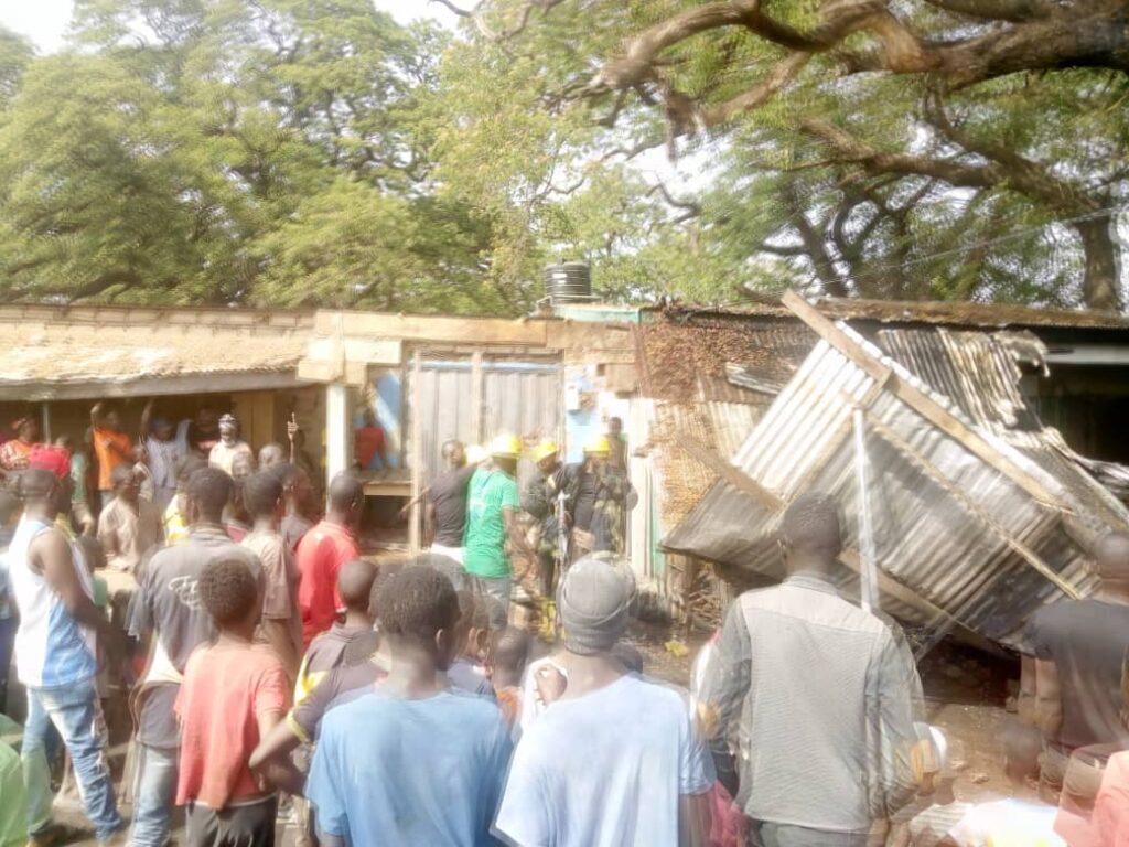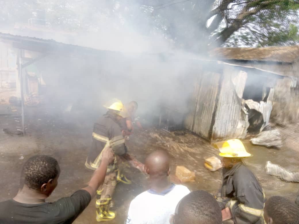 Market women and buyers on seeing the fire the motor repairers shed runnned away and only retuned after the National Fire Service officials who were given a distress call arrived to put out the fire.