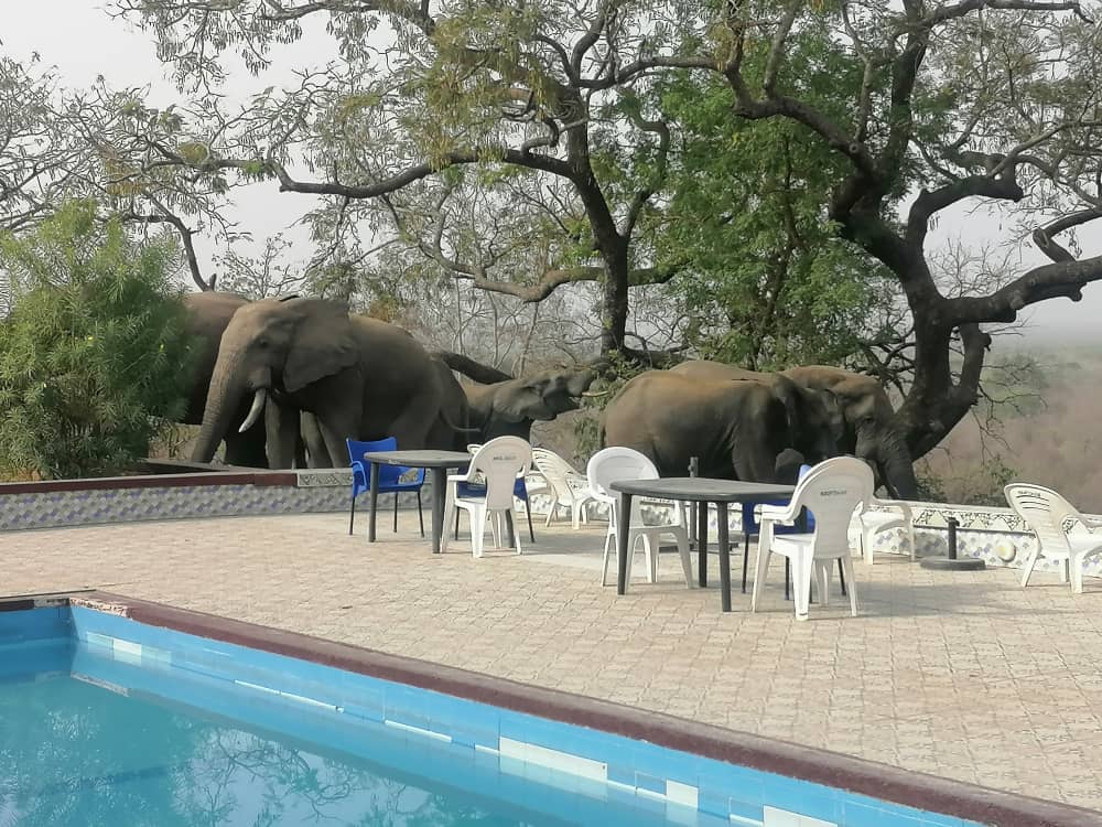 On daily basis elephants usually moving in groups of about 10 can be found around the facility with some of the comfortable and not fearful animals making attempt to drink the water from the swimming pool in the Motel.