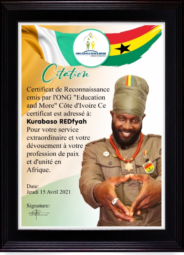 The award was presented to Kurabaso REDfyah after he had put a vibrant performance at the prestigious International reggae club, ‘Parker Place’ in Abidjan, Côte d’Ivoire on Thursday 15th April, 2021.