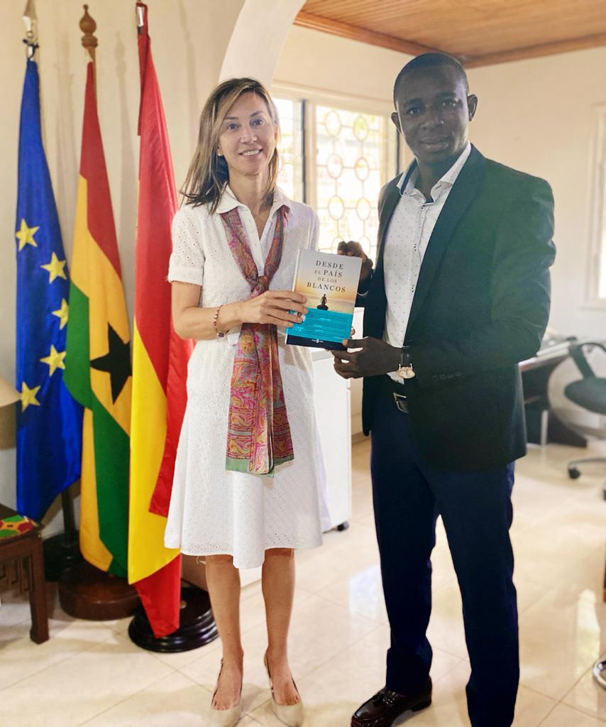 At the meeting with the Spanish Ambassador, Mr. Banasco Seidu Nuhu who is the Co- Founder of Nasco Feeding Minds and was the New Patriotic Party (NPP) Parliamentary candidate in the 2020 election for Sawla-Tuna-Kalba District presented two books authored by Mr Ousman Umar to the Spanish Ambassador, Viaje Al Pais De Los Blancos (Trip to the land of the whites) and Desde El Pais De Los Blacos (Living in the land of the whites).