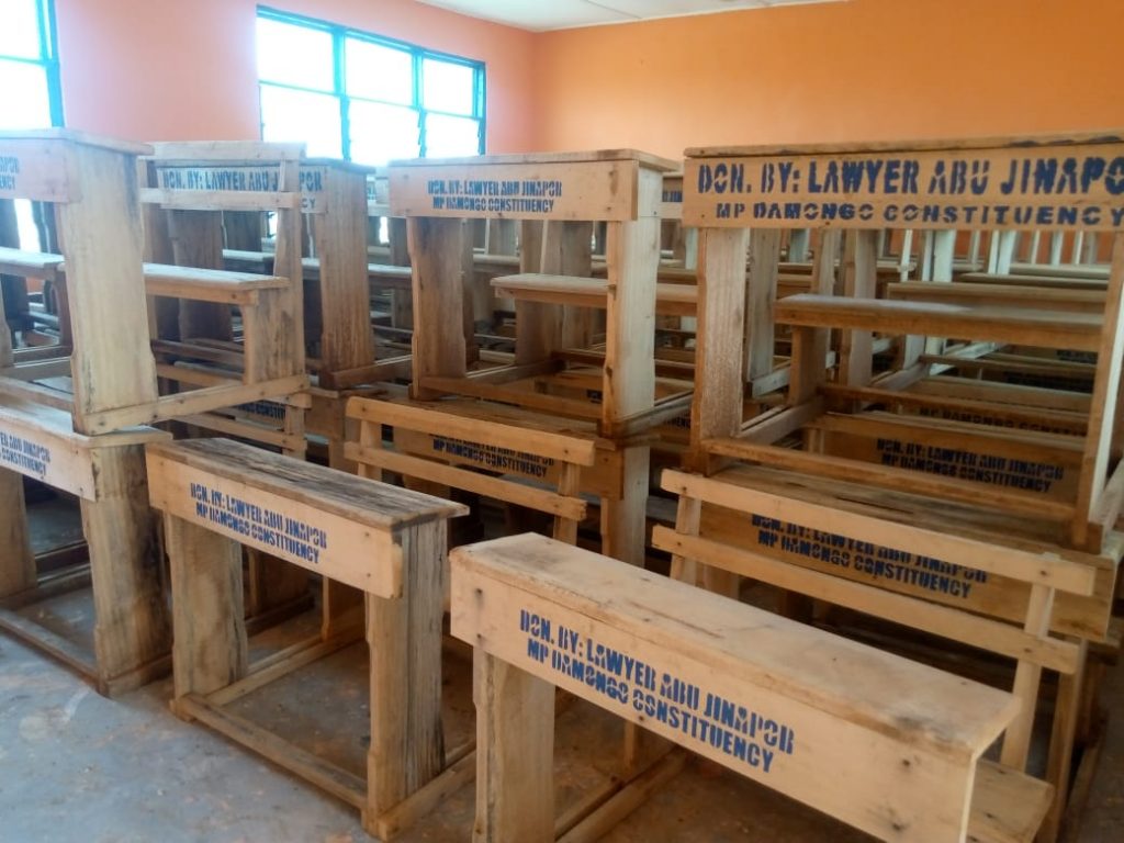 The New Patriotic Party (NPP) Chairman for the Damongo Constituency, Alhaji Adams Braimah who presented the desks to the school on behalf of the MP said the donation is the fulfillment of a request made by the school authorities to the MP.