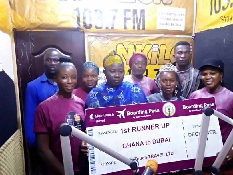 Miss Seidu Sadia who was eloquent, vocal and her presentations and narrated meaningfully, the cultural values of yhe Savannah Region, its tourist sites, some possible solutions to outmoded cultural practices and so on, visited Bole based Nkilgi Fm to thank the management and staff of the Radio station for standing by her from day till the end of the programme.