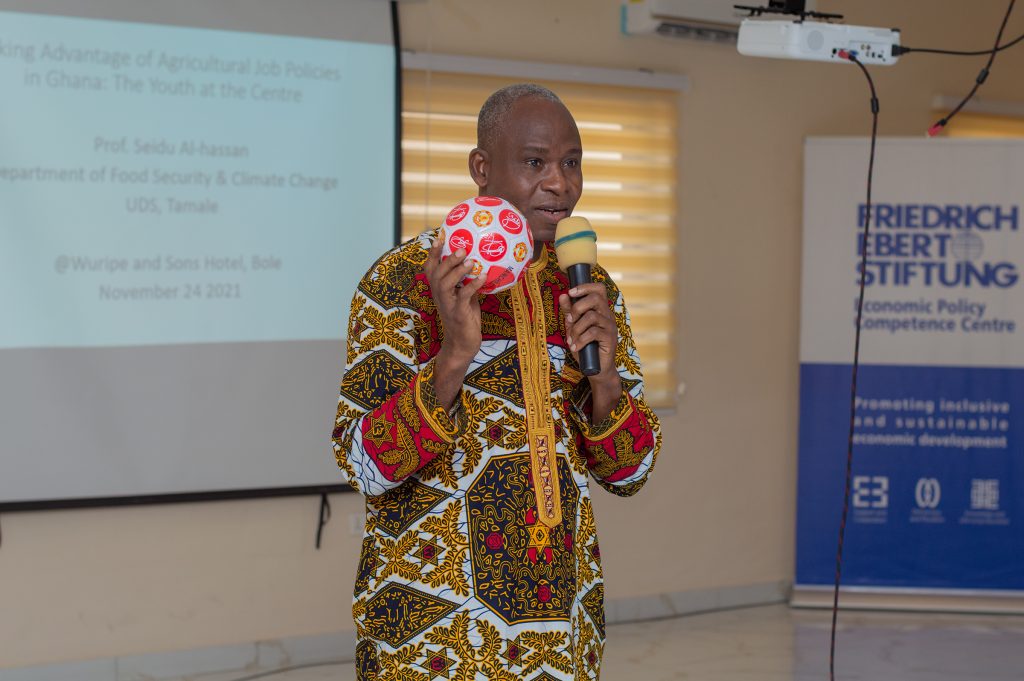 Panel discussions, presentations, and group breakout sessions centered on Taking advantage of Agriculture Job policies in Ghana: The Youth at the Centre where a former Pro Vice Chancellor of the University for DevelopmentStudies (UDS), Prof. Alhassan Seidu highlighted on how the agricultural sector were facing several challenges which makes many youth runaway from venturing into it.