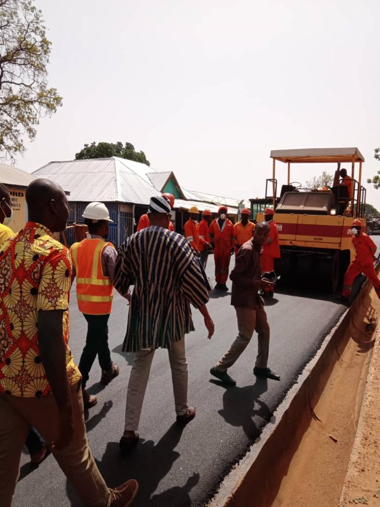 The Savannah Regional Minister Mr Saeed Muhazu Jibril has inspected the ongoing asphalting of the town roads in the Damongo township.