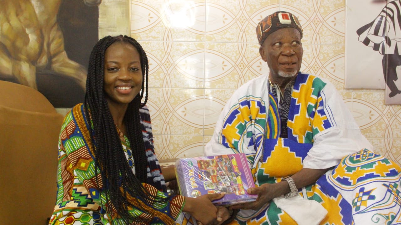 The Savannah Regional representative for the 2021 edition of Ghana Most Beautiful (GMB) Miss Arama Sulemana on Friday, February 25th, 2022, paid a courtesy call on the Paramount Chief for the Buipe Traditional Area and Vice President of the Savannah Regional House of Chiefs Buipewura Abdulai Jinapor II.