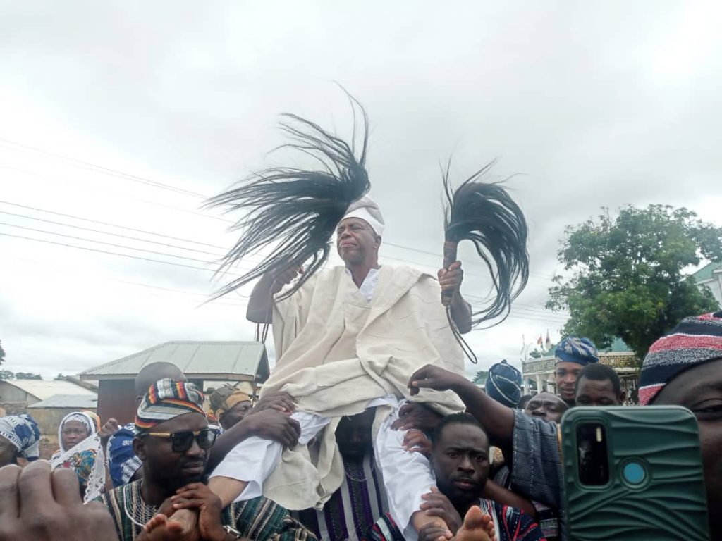 The new Chief Mr Silas Natomah accepted all the statements made by the kingmakers and was subsequently enkinned as the Gbilinpewura. After the enskinment at the forecourt of the Bolewura’s Palace, the Gbilinpewura was taken into the Palace of the Bolewura to pay allegiance to the Paramount Chief and his Council before he was raised shutdown high amidst dancing and drumming to family house.