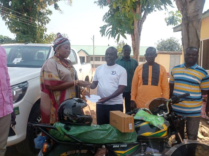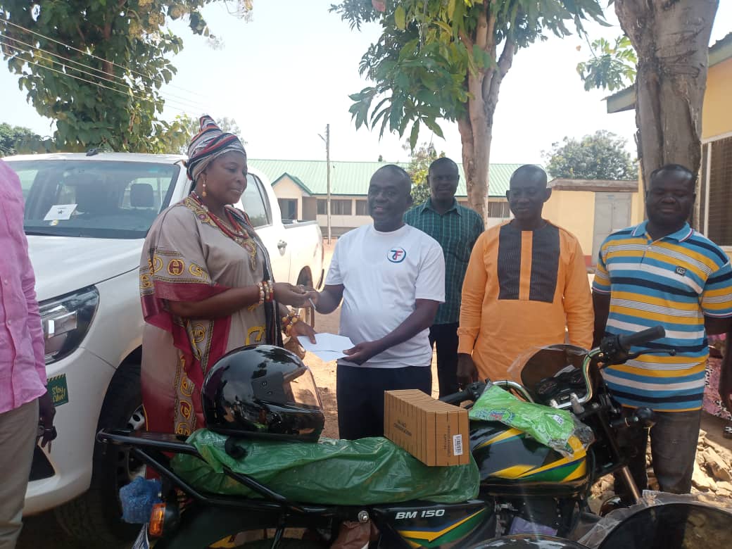 The Bole District health director Ndapewurche Hajia Fusehina Sulemana and the Bole district Coordinator and the head of supervision of the Ghana Education Service Mr Jamani Bakari received the motorbikes on behalf their various offices.
