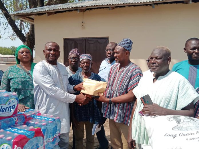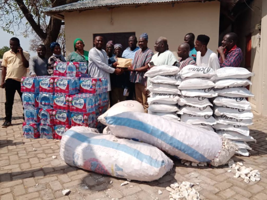 The items included 50 bags of Rice, 50 packs of Verna Drinking Water, 2 Bags of Maize and 2 Bags of Dried Cassava with a cash amount of Thirty Thousand Ghana Cedis (GHc 30,000).