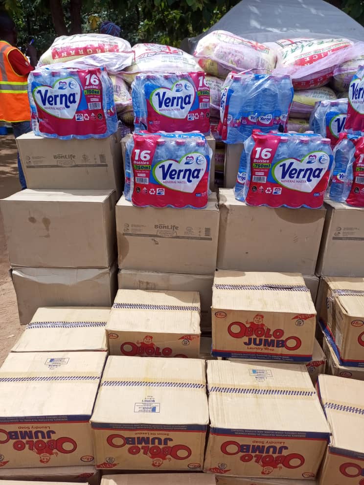 These items were handed to NADMO officers in the Central Gonja District of the Savannah Region to distribute to the flood victims.