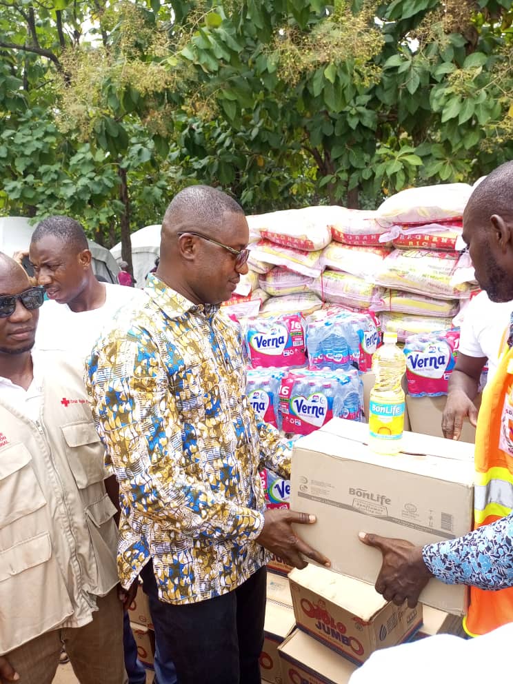 The Member of Parliament (MP) of the Yapei Kusawgu constituency, Hon. John Abdulai Jinapor has donated assorted items behalf of former President John Dramani Mahama to the Buipe flood victims at a short ceremony in Buipe. The items include 100 bags of rice, 50 cartons of cooking oil, 50 cartons of bottled water, and 50 cartons of soap.
