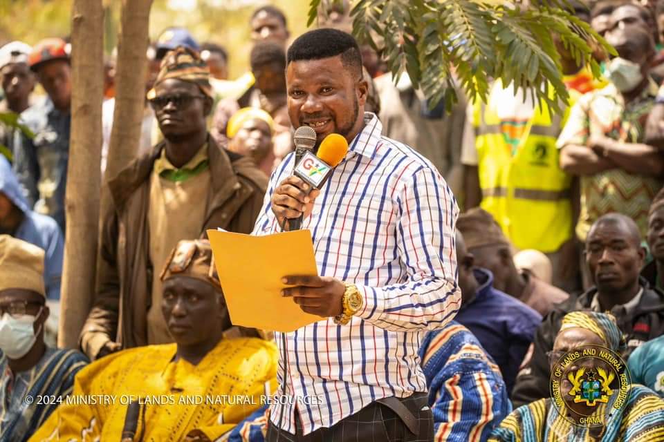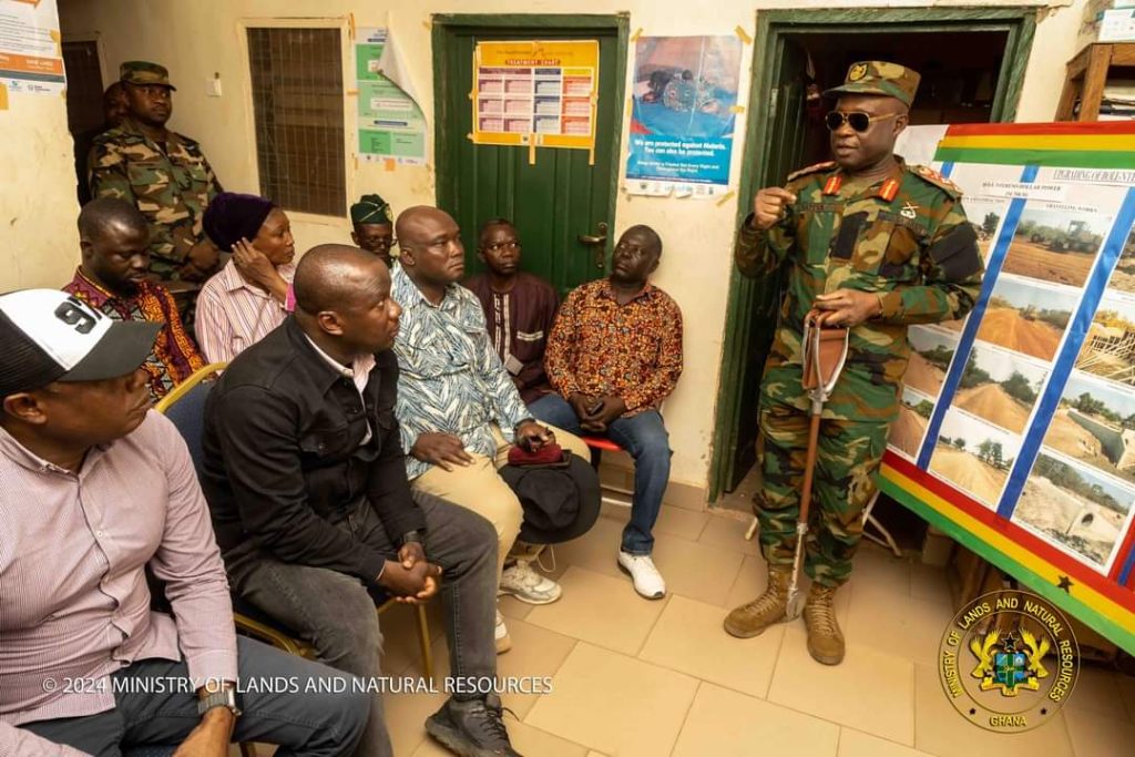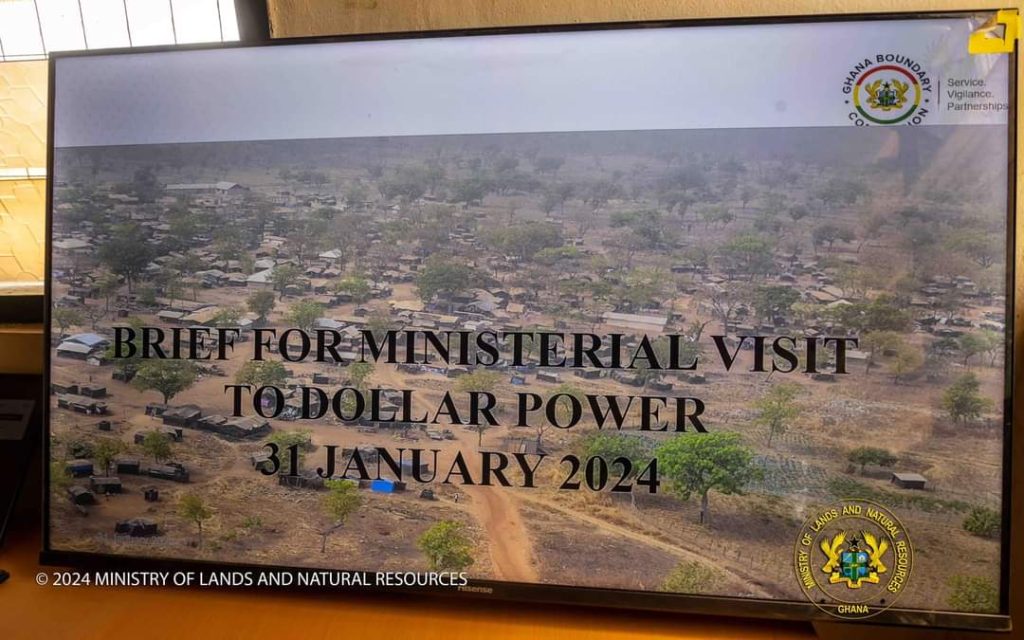 The Minister for Lands and Natural Resources Hon. Samuel Abu Jinapor together with the Deputy Ministers for Lands and Natural Resources, and Roads and Highways, as well as the leadership of the Ghana Boundary Commission, led by General Emmanuel Kotey on 31st January, 2024 paid a working visit to Dollar Power, a community along the Ghana-Ivory Coast International Boundary Line in the Savannah Region noted for its highly mineralized lands.