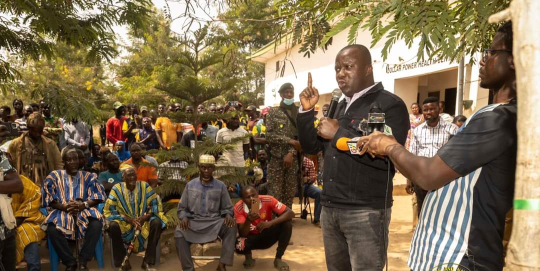 The Minister for Lands and Natural Resources Hon. Samuel Abu Jinapor together with the Deputy Ministers for Lands and Natural Resources, and Roads and Highways, as well as the leadership of the Ghana Boundary Commission, led by General Emmanuel Kotey on 31st January, 2024 paid a working visit to Dollar Power, a community along the Ghana-Ivory Coast International Boundary Line in the Savannah Region noted for its highly mineralized lands.