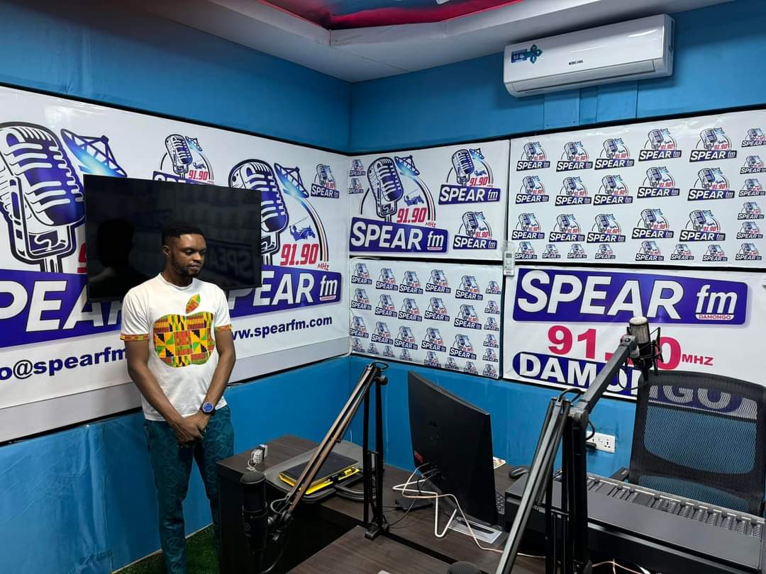 Writing on his official Facebook account he wrote; “On Air Now 91.9 Mhz Spear Fm, Damongo”.