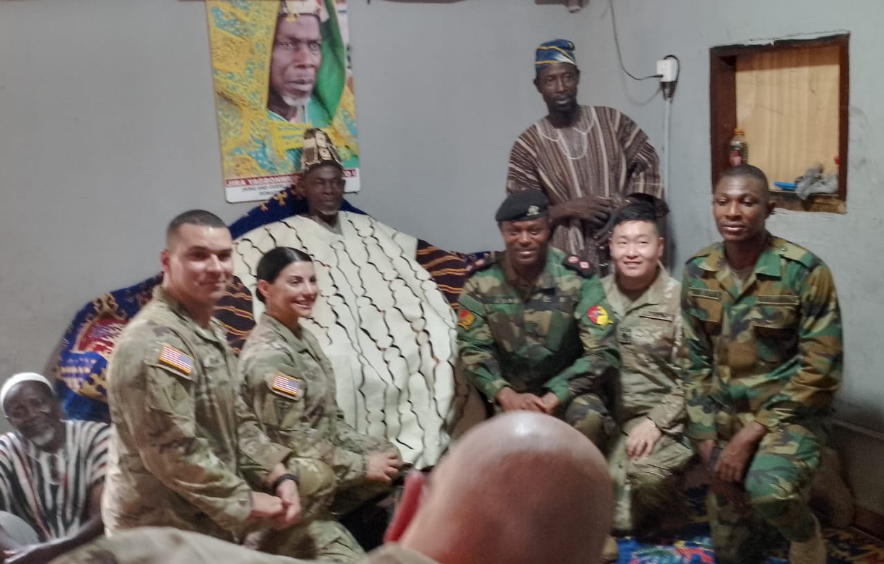 A team of United States of America (USA) Army and Air Force Medical Professionals led by the Savannah Regional 155 Armoured Regiment Commanding Officer Lieutenant Colonel Philomen Hoffman visited Yagbonwura Bii-Kunuto Jewu Soale (I) at his residence on 2nd April, 2024.